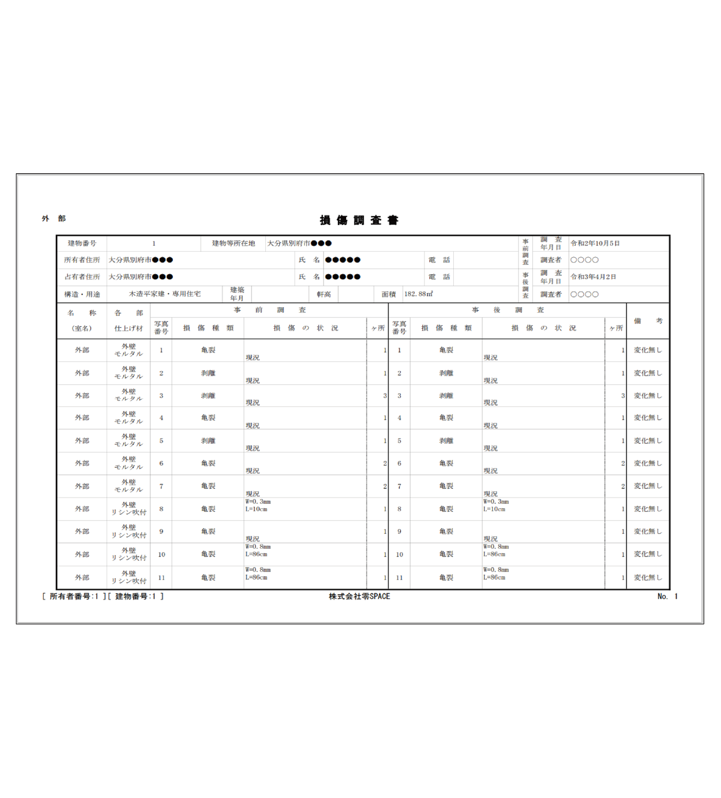 事前画像が画面の左側に並び、事後調査は右側を埋めるように撮影していきますので撮り忘れがなくなります。
