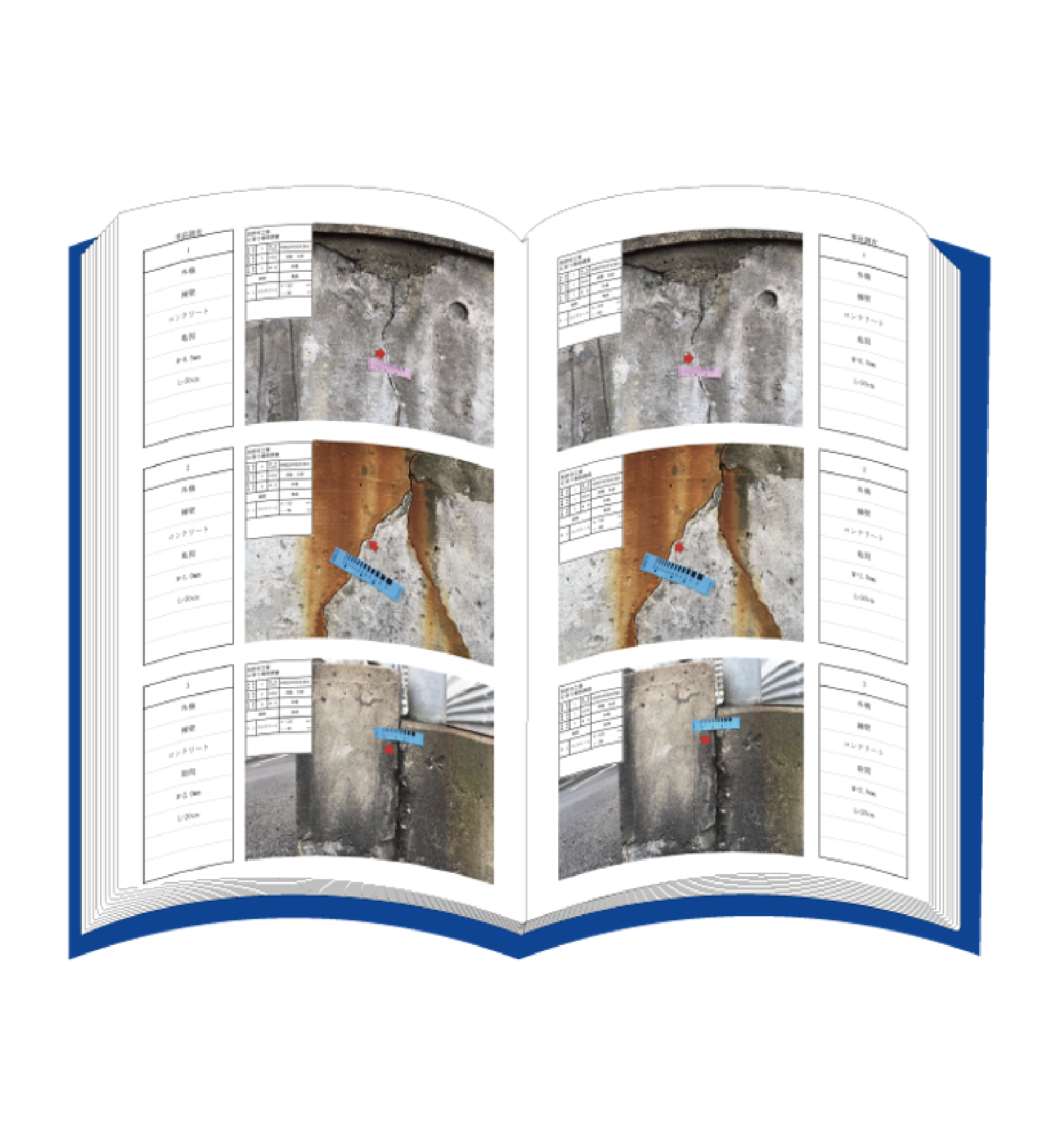 損傷状況の入力・撮影・写真整理まで、すべて現場で完結します。