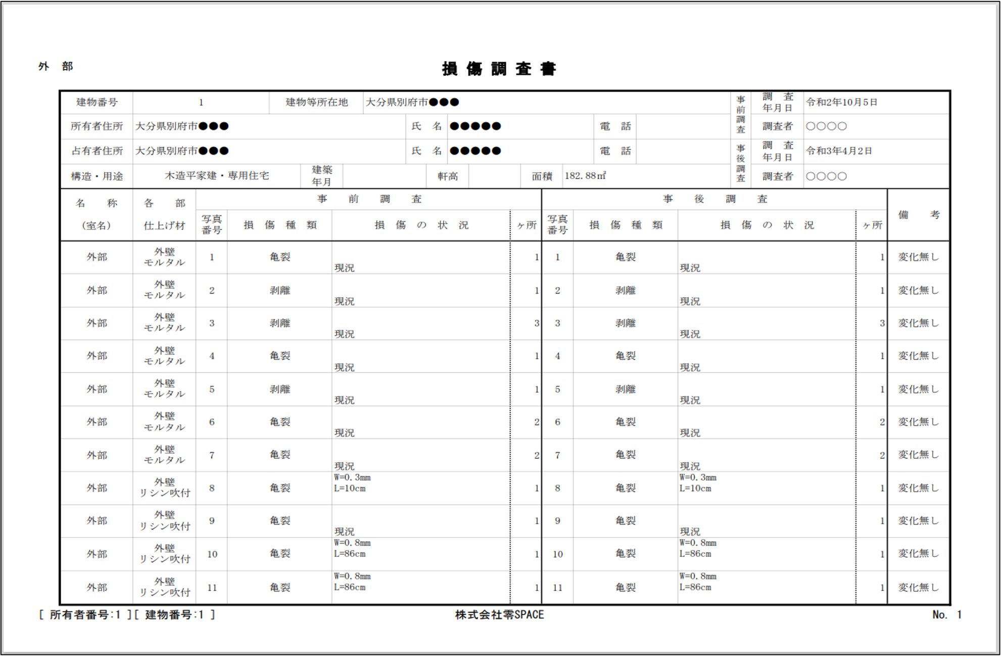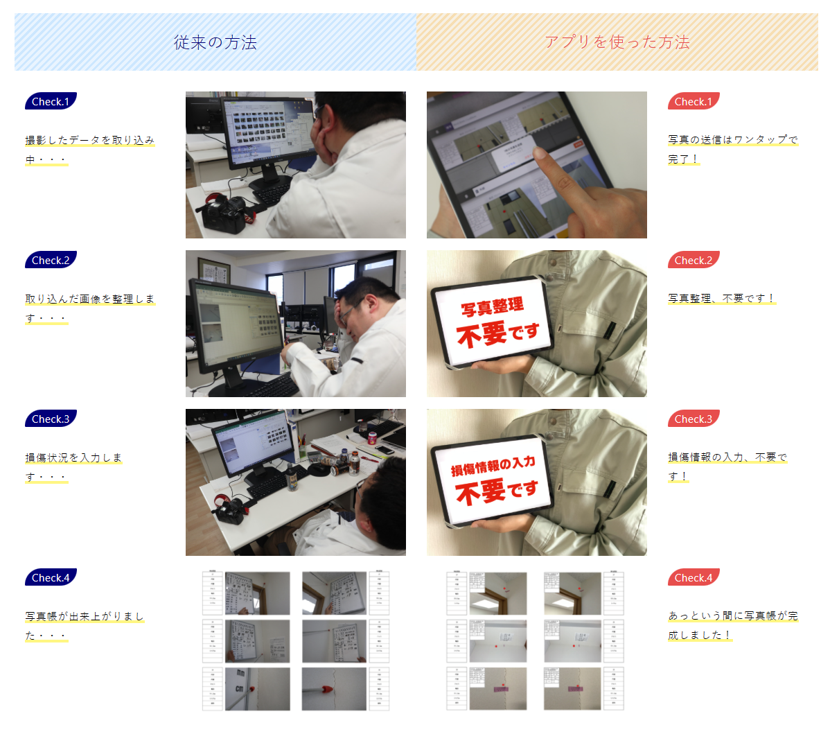 事前画像が画面の左側に並び、事後調査は右側を埋めるように撮影していきますので撮り忘れがなくなります。