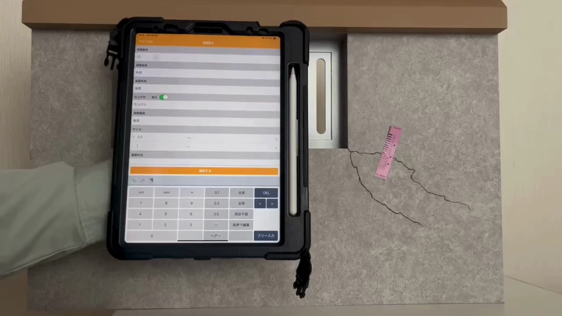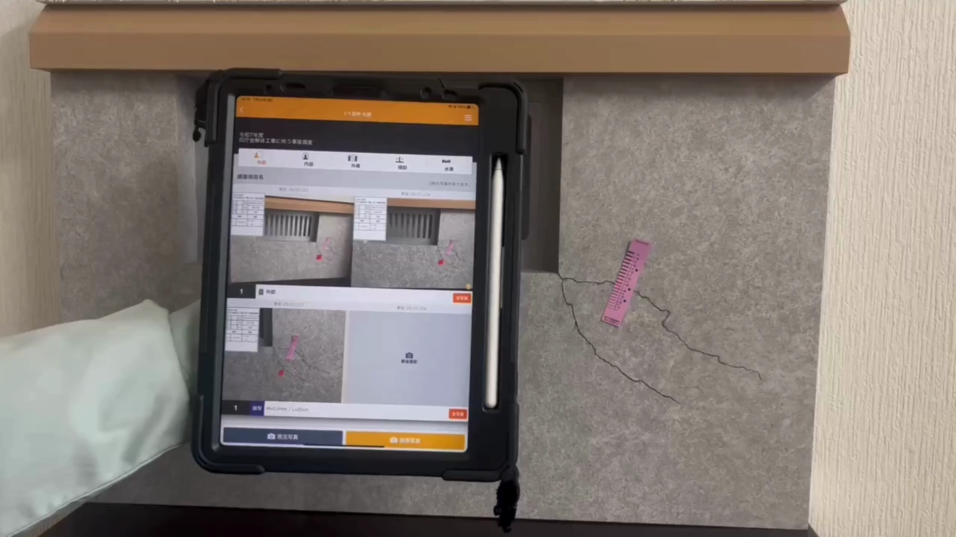 損傷状況の入力・撮影・写真整理まで、すべて現場で完結します。